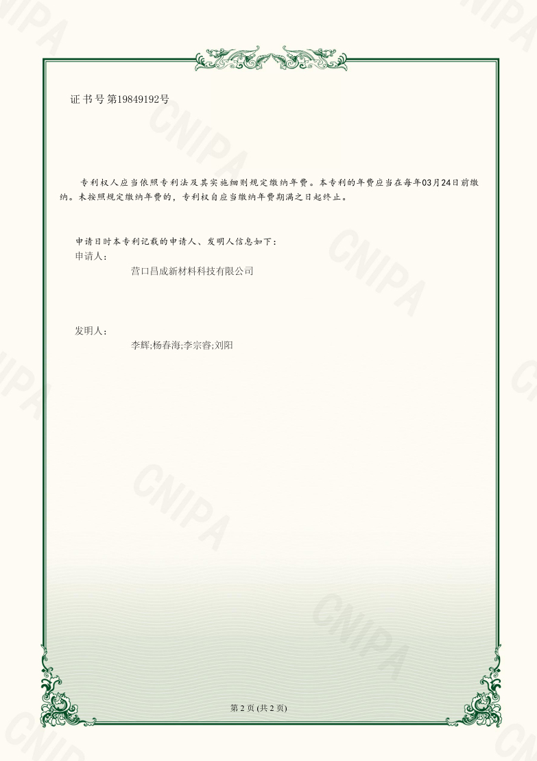 Copyright(C)2021,Yingkou Changcheng New Material Technology Co., Ltd. All Rights Reserved.